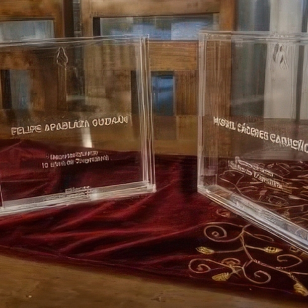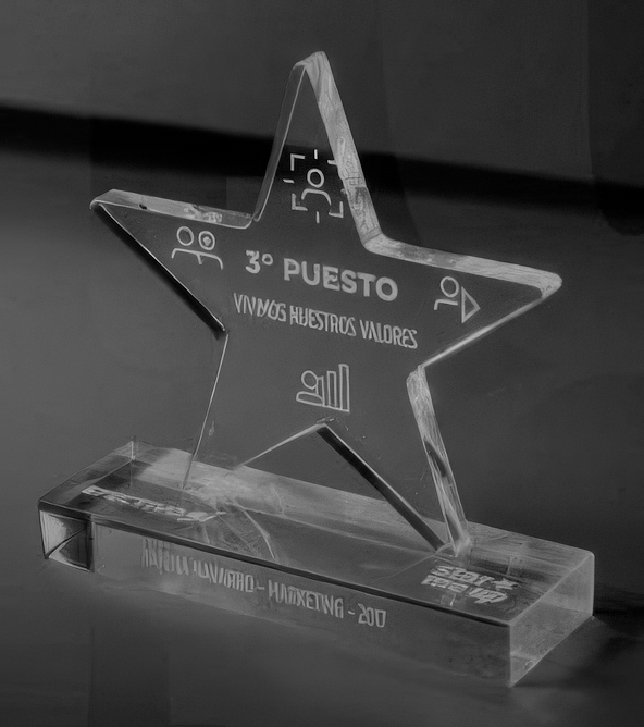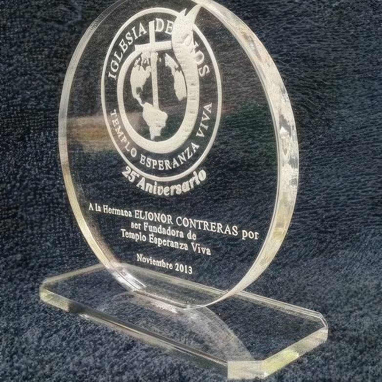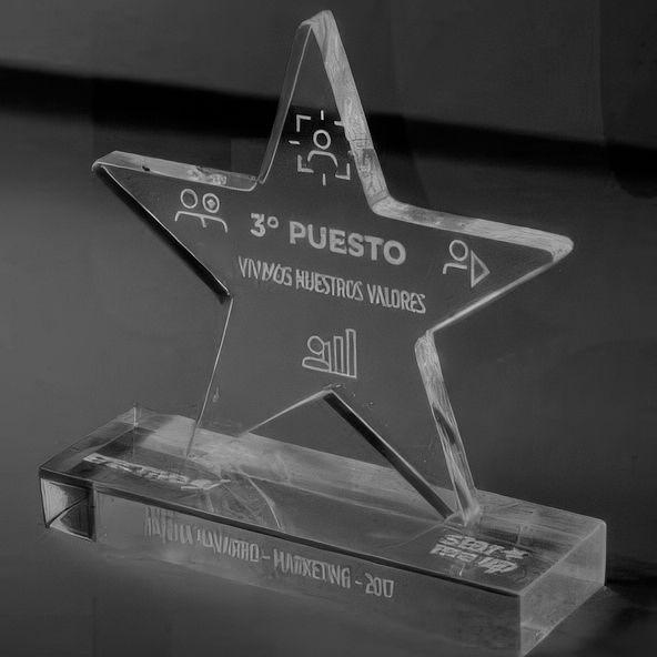 Galardones de diseño exclusivo con grabado láser para eventos corporativos y premiaciones.